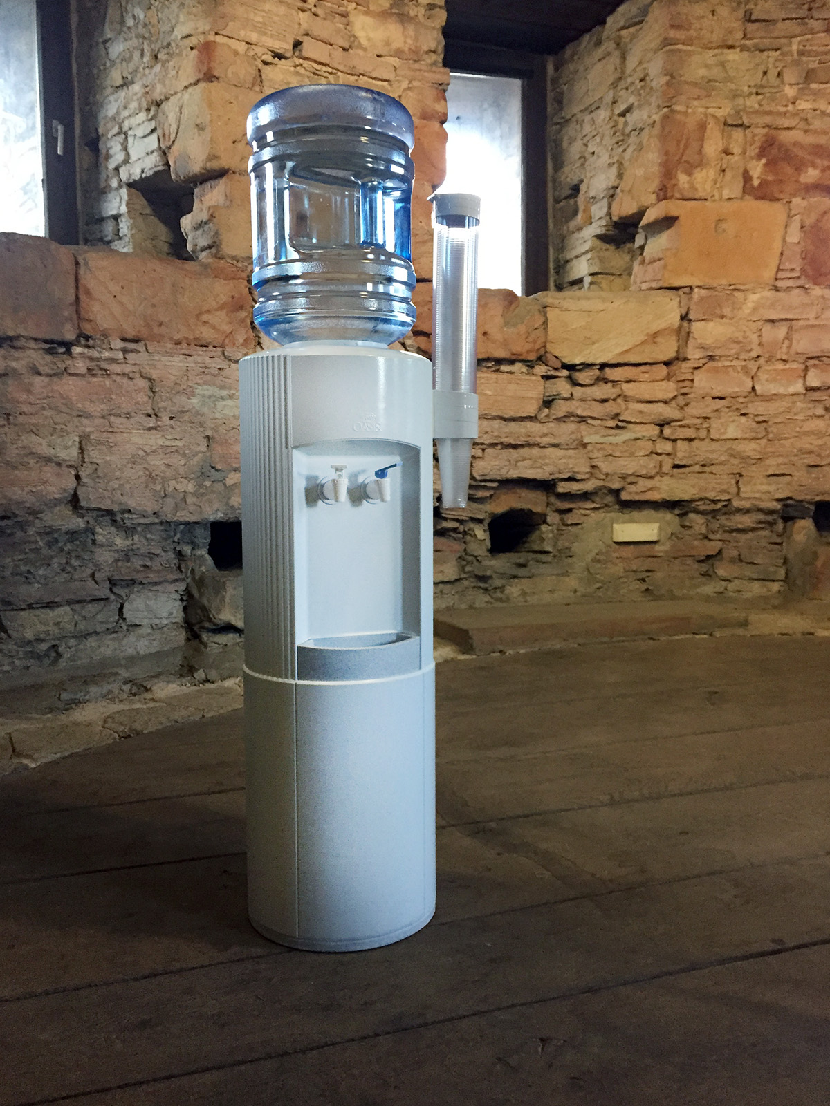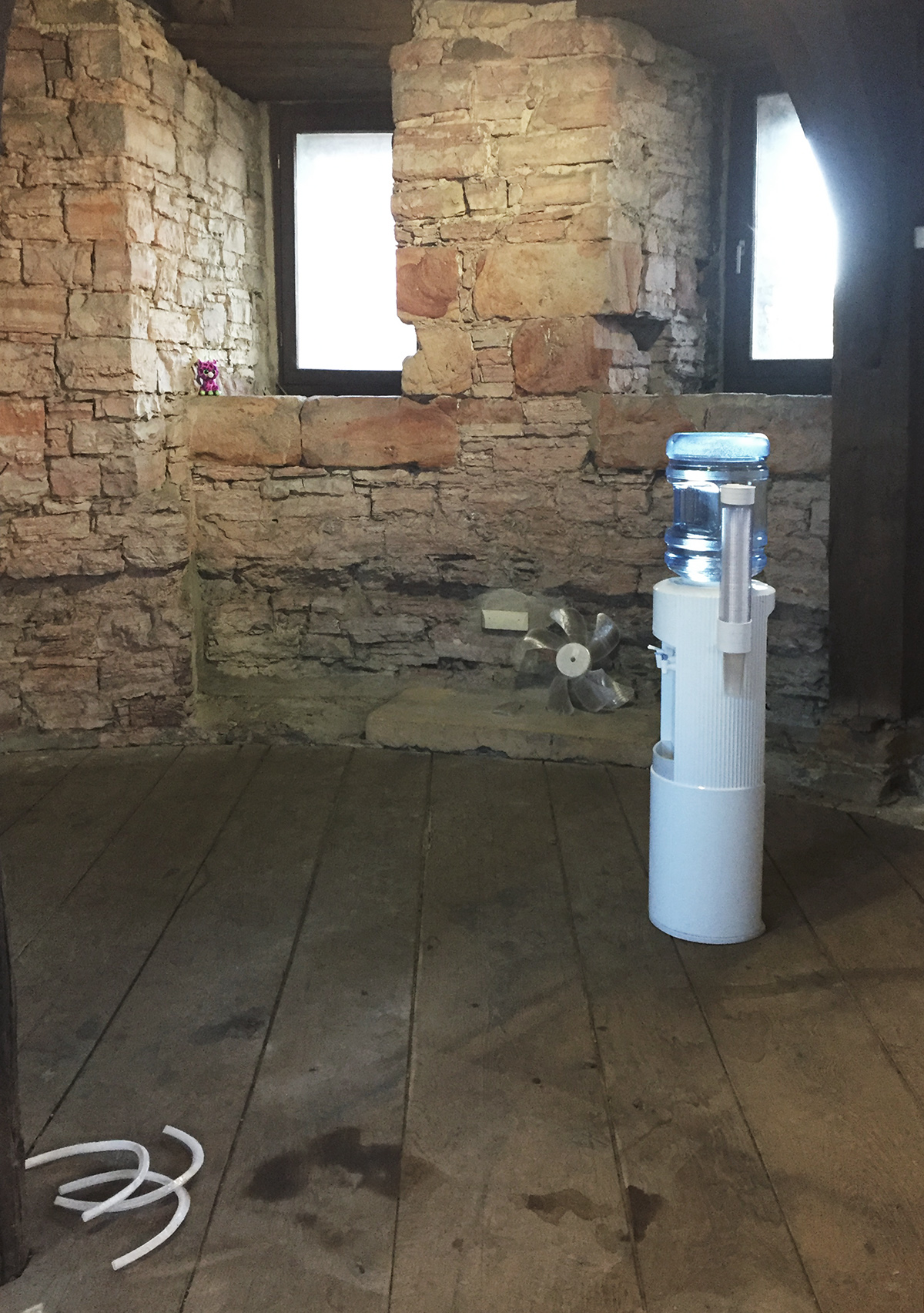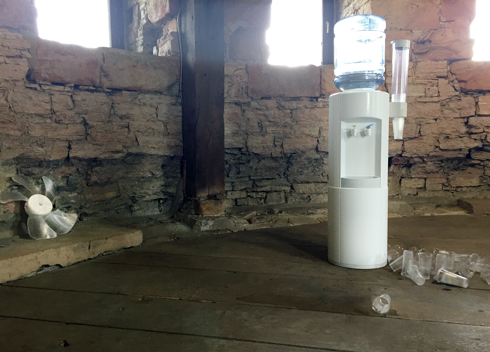 Myths About Everything, 2017 PLA, water dispenser, water, cress, pond fleece, fiber glass, colophonium, glyceryl rosinat, cera alba, Ty Beanie Boos Gilbert, speakers, stock market data