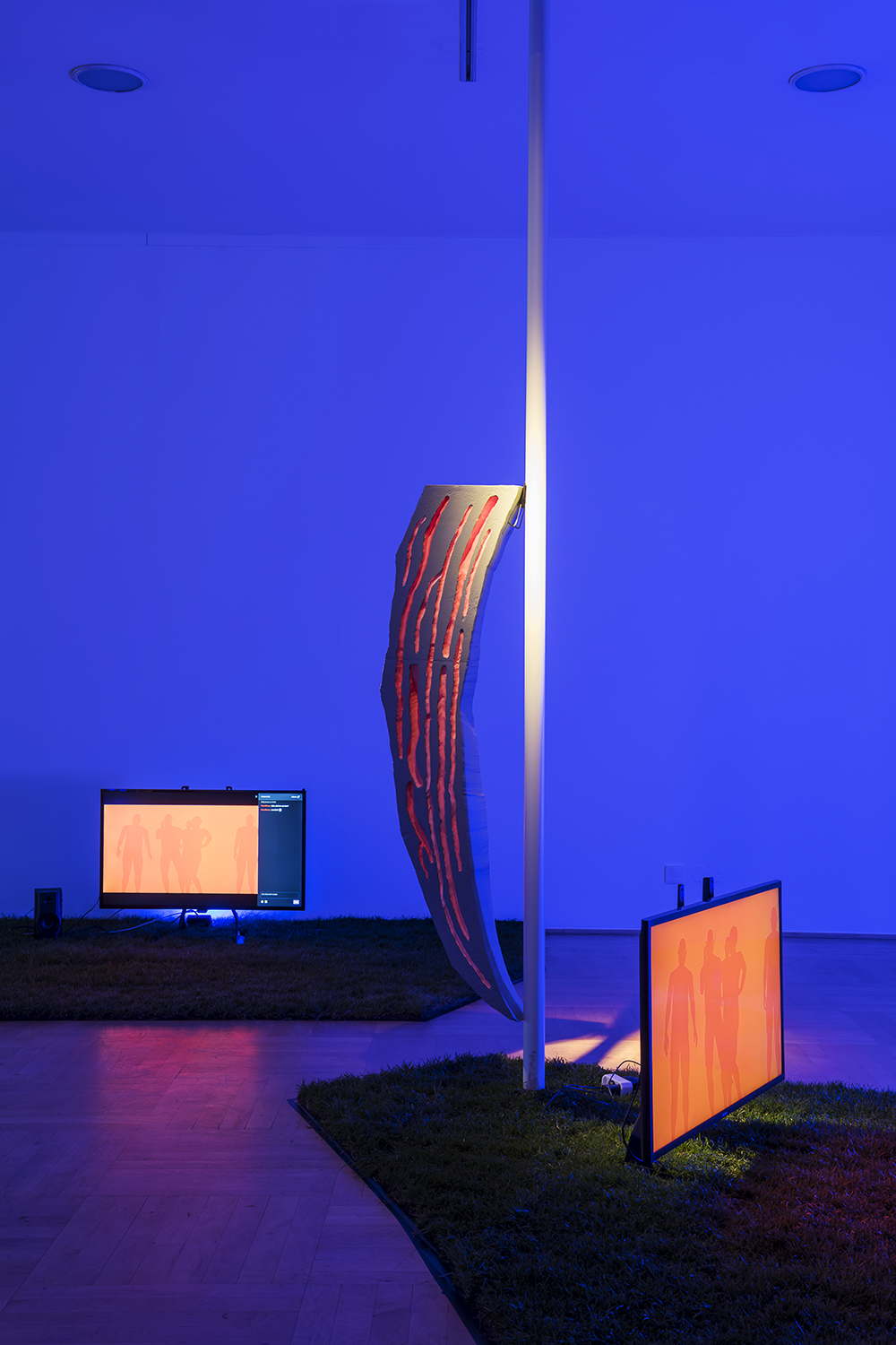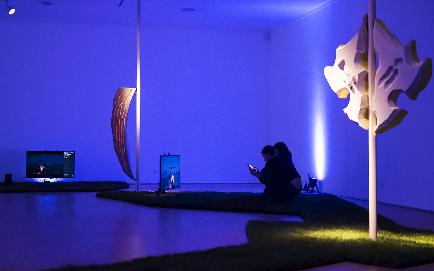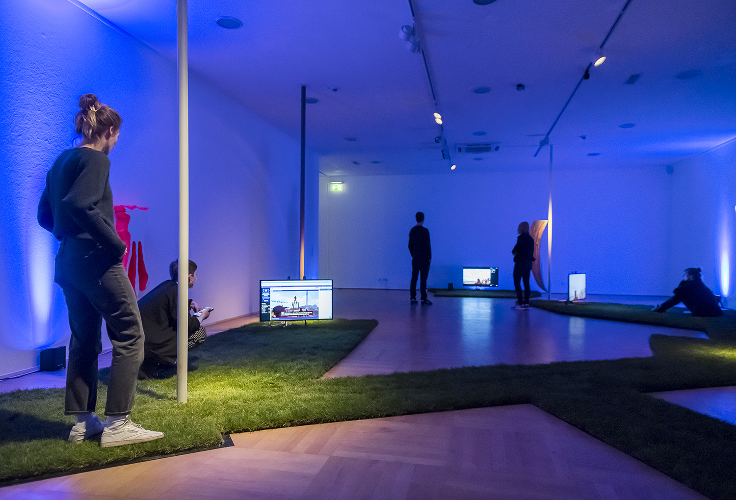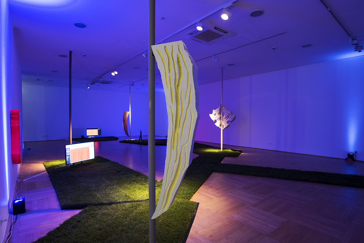 Installation & objects developed for 10 live online-performances and video works that were presented via twitch and transmitted to the exhibion space. Screen-based works by LaTurbo Avedon, Marco Buetikofer and Lotte Meret Effinger, Sky M. J. Carranza, Ann Hirsch, Mareen Müller, OMSK Social Club, Paidia Institut, Eva Papamargariti, Tabita Rezaire, Theo Triantafyllidis and Agatha Valkyrie Ice.